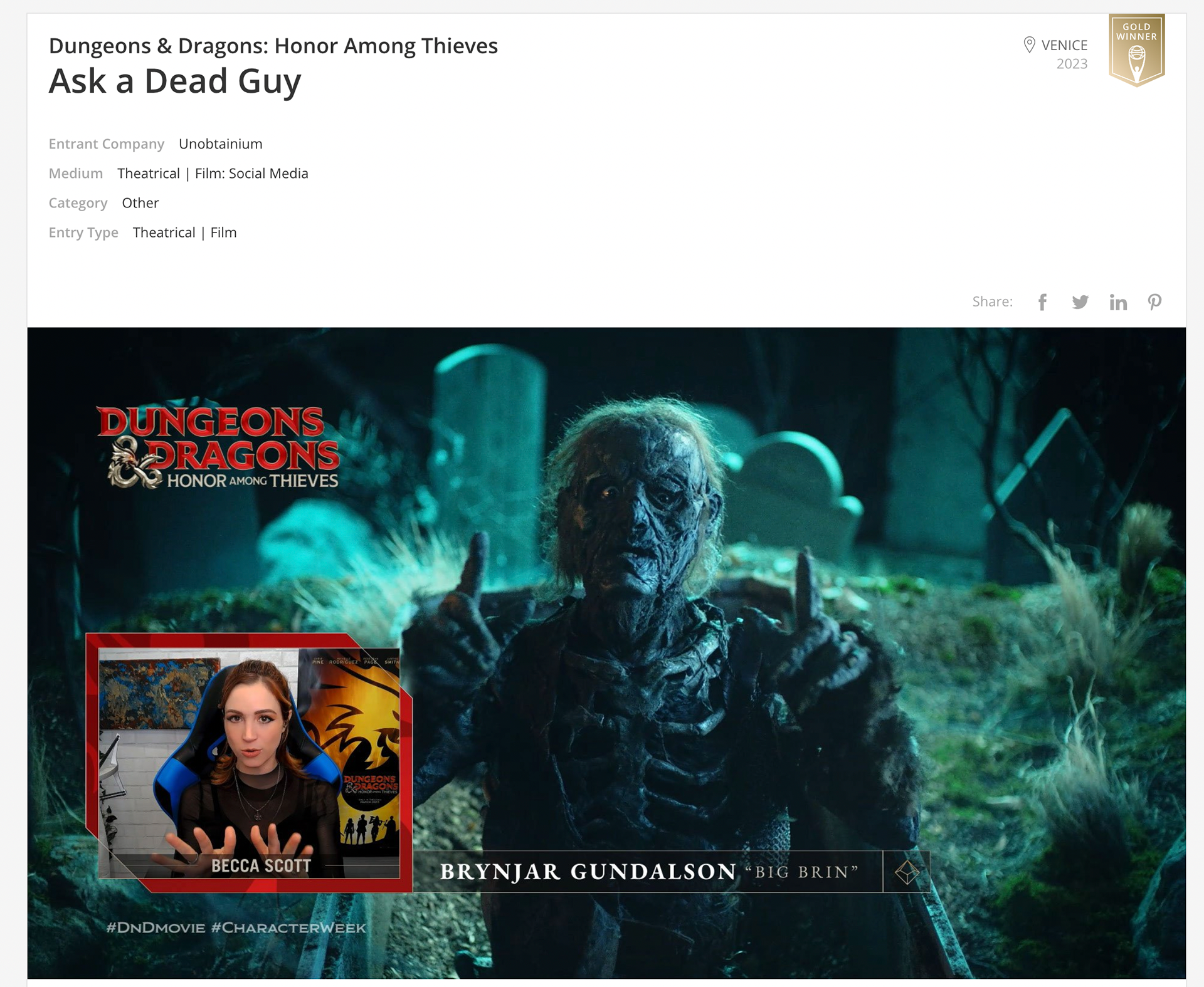 Honor Among Thieves Promo - 2023 CLIO GOLD WINNER